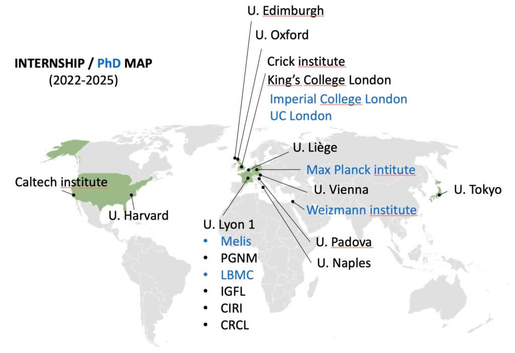 • 8/13 alumni from the first cohort (2022-2024) in PhD programs, including 2 recipients of BMIC U. Lyon1 graduate school scholarships